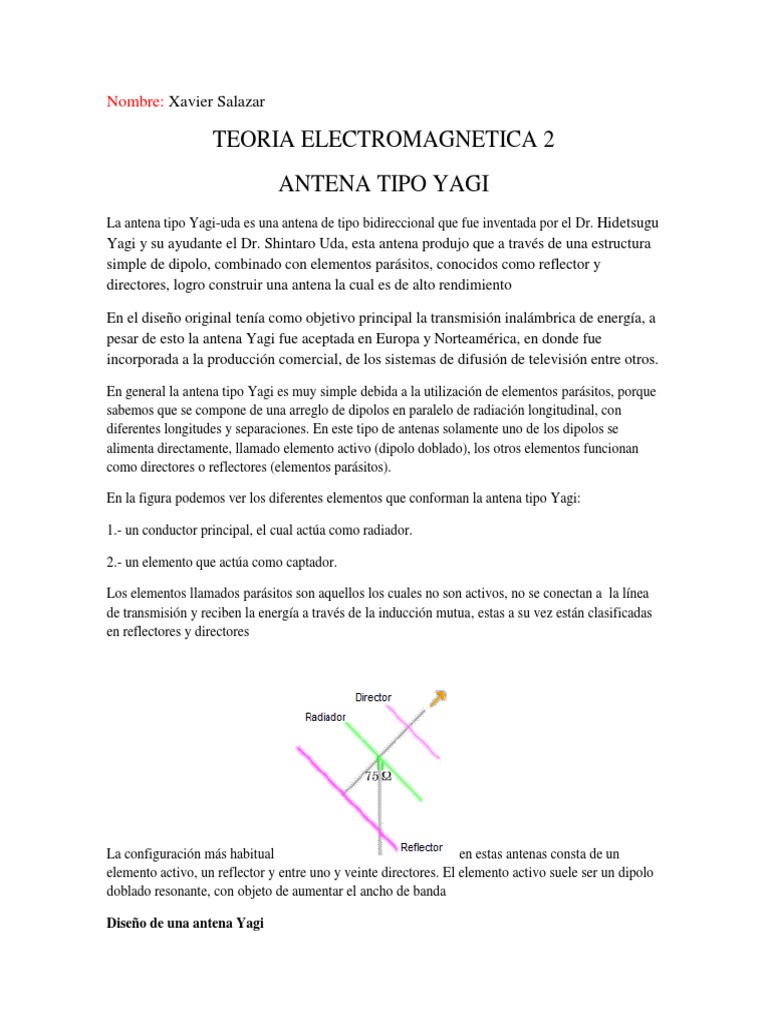 Ondas Electromagnéticas Guiadas. : Diseño de antena Yagui y Parabolica